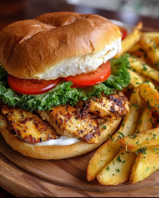 A satisfying lunch classic featuring a juicy grilled chicken breast layered with fresh toppings in a toasted bun, served with golden crispy fries on the side. Simple, flavorful, and perfect for a quick homemade meal. Prep Time: 10 minutes Cook Time: 15 minutes Servings: 2 Ingredients: For the Chicken Sandwich 2 boneless chicken breasts 1 … Read more
