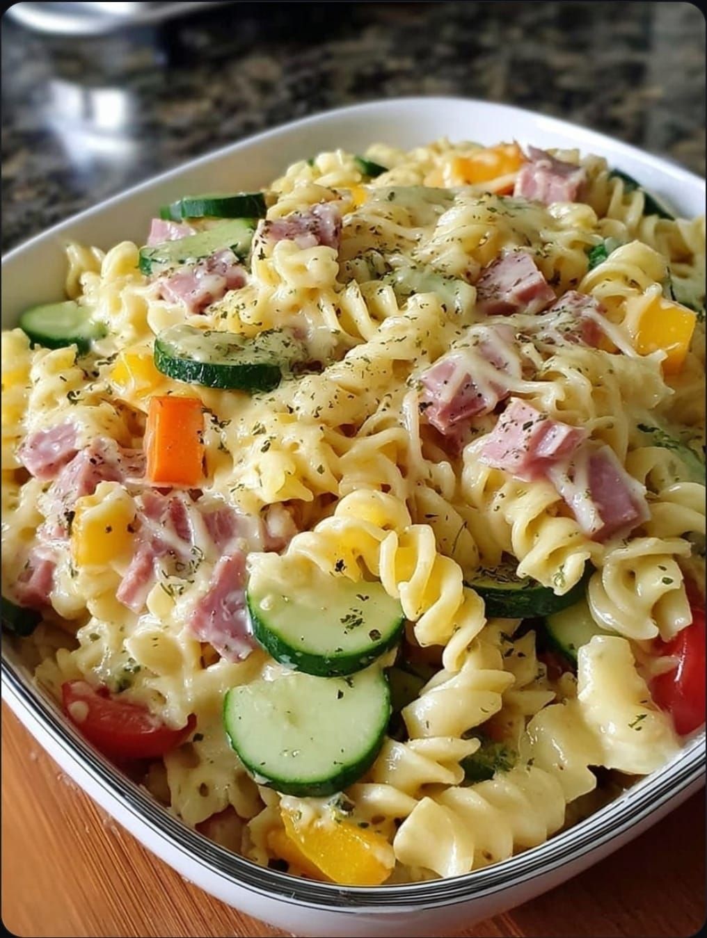 magine a sunny summer day, a picnic blanket spread out under the shade of a towering oak tree, and the delightful aroma of a homemade pasta salad filling the air. Cold Pasta Salad with Veggies, Cheese, and Ham is the perfect dish to bring to any gathering or enjoy as a refreshing meal on its own. This recipe has been passed down through generations in my family, and it never fails to impress. The combination of colorful vegetables, savory cheese, and tender ham tossed in a tangy dressing will leave your taste buds craving for more. Let me share the secrets of this beloved recipe with you.