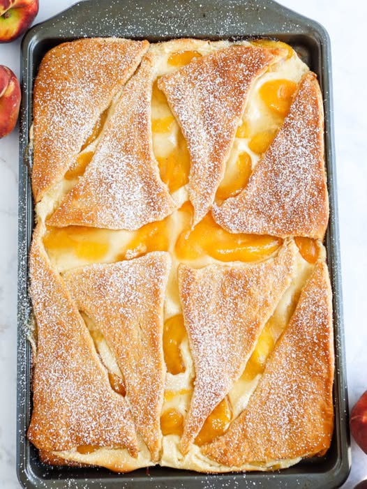 his giant Danish is a delight! The blend of cream cheese and sugar is rich and tangy. Once baked, the crescent roll dough forms a flaky, buttery crust. We chose peach pie filling for the fruity touch. But we can’t wait to try other flavors. Easy to make, this Danish is great for brunch, breakfast, or dessert.